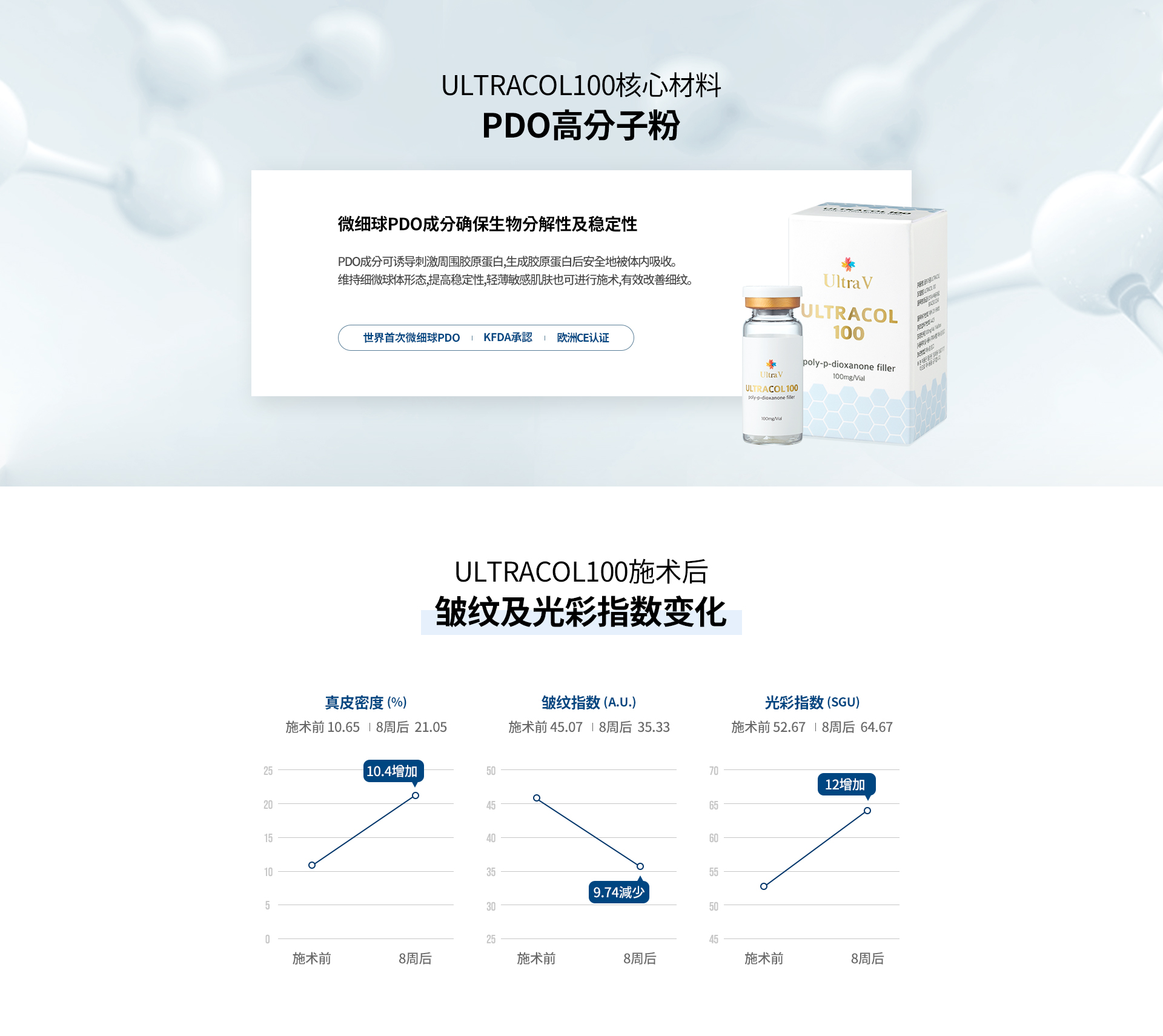 UltraCol水光针通过注入微粒状PDO胶原增强剂,刺激肌肤自生胶原,改善弹性与紧致度。